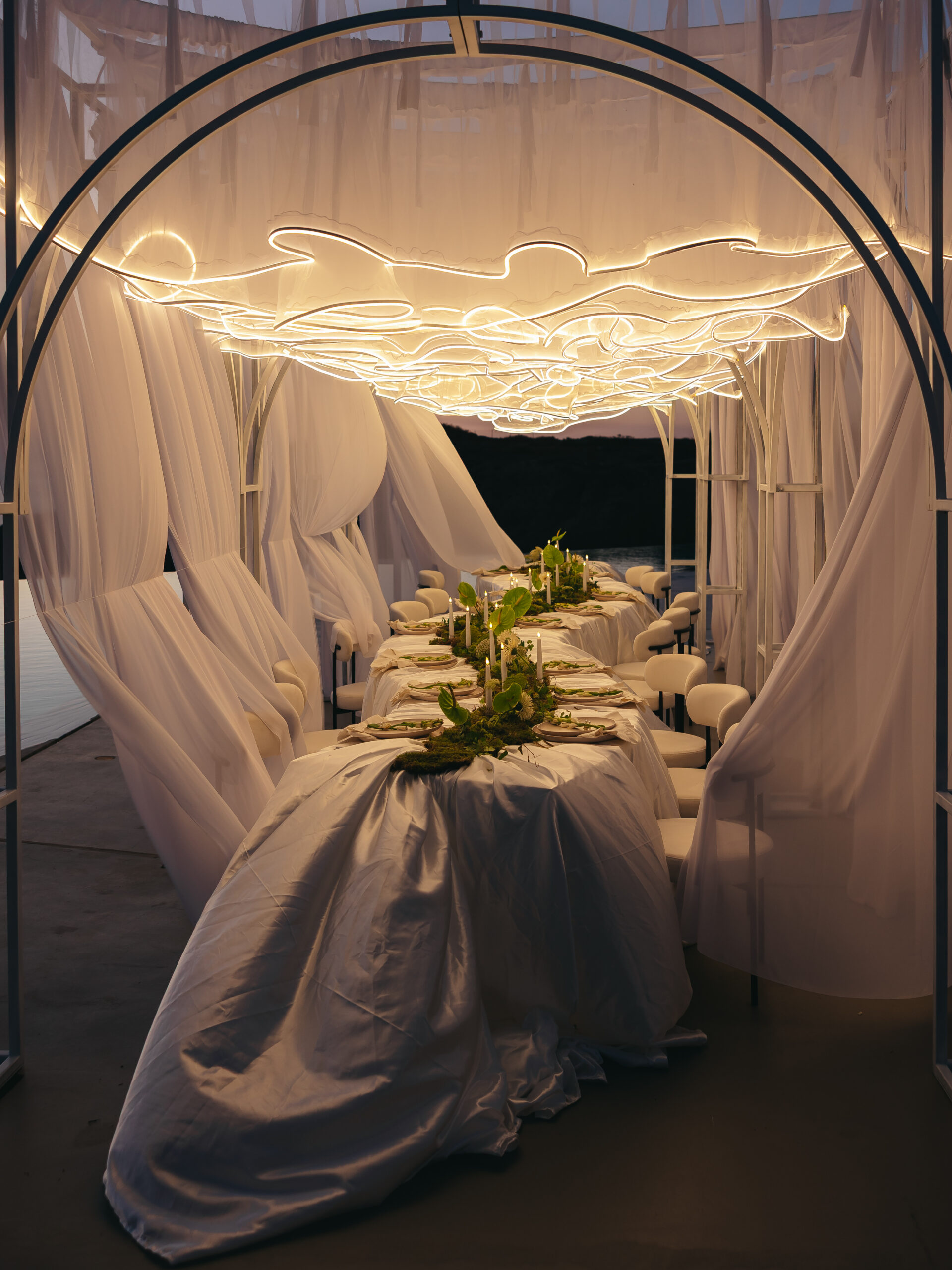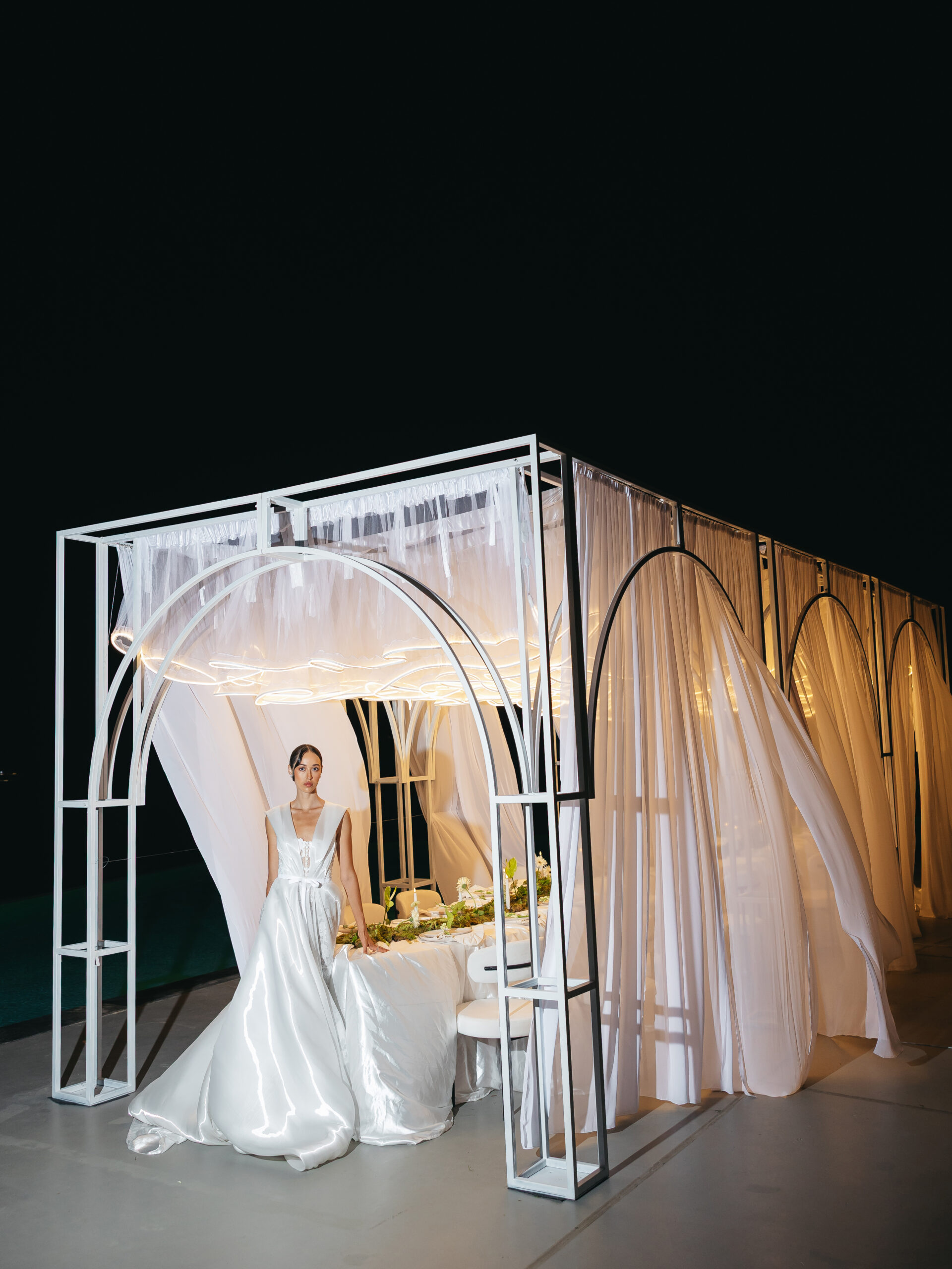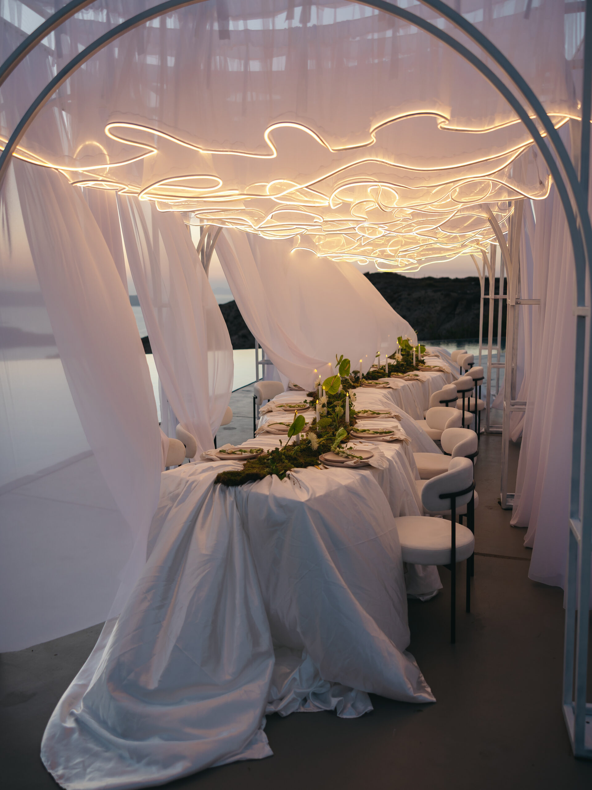 Create a magical ambiance with our Cycladic Arched LED Curtain. Inspired by the smooth, timeless curves of Greek island architecture, this elegant arch features a cascading LED curtain that adds a soft, sparkling glow to any event. Perfect as a wedding backdrop, photo opportunity, or statement décor piece, it brings romance and sophistication to your celebration while captivating your guests with its luminous charm.